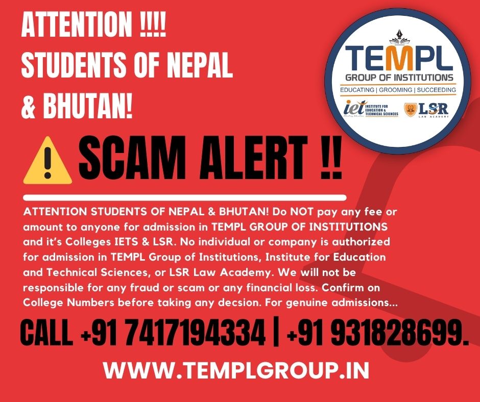 The TEMPL Group of Institutions was founded with the intention of satisfying the founders' deep-seated need for education related to the advancement and evolution of humanity, under the auspices of a spiritual and social organization, roughly fifty years ago. The first Institution appeared in name of SIMPL Computer Management System with accreditation center for CMC Computer Education a Govt. of India Enterprise. It was further enriched with the UG and PG courses of Punjab Technical University. Allahabad Agriculture University under Distance Education Program. The LSR Law Academy was established in the sweet memory of founder Lal Singh Rohila (LSR) in field of Law Education for LLB. three years course affiliated to Chaudhary Charan Singh University, Meerut and approved by Bar Council of India (BCI) and also for five years integrated B.A. LL.B and B.Com. LL.B course with the theme to prepare law graduates of International standards with the quality of high moral and ethical values.